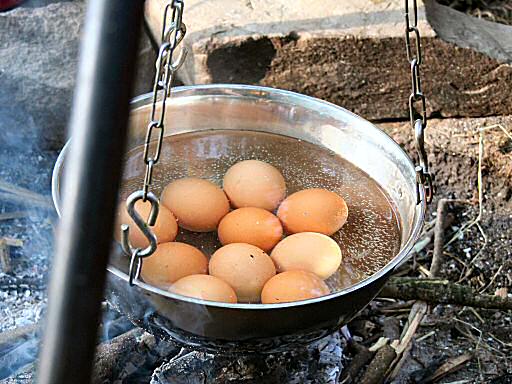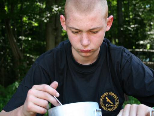 Nazajutrz pojechaliśmy Land Roverem do naszego stałego miejsca nad Cisną i Wetliną - stacjonowaliśmy w środku lasu z dala od cywilizacji, za to blisko dzikiej zwierzyny i przyrody. Pierwszymi czynnościami, które należało wykonać było urządzenie obozu. Ja i Kuba zajęliśmy się łazienką, budową spiżarni, lodówki i zadaszenia na menażki i inne rzeczy do kuchni, zaś Jędrek budową latryny. Reszta osób rozbijała namioty i zajmowała się rozpalaniem ogniska, znoszeniem drewna i przygotowywaniem obiadu. Po wykonaniu tego wszystkiego każdy zajął się własnymi zajęciami, a ja i Krisek pojechaliśmy po zakupy. Pamiętam, że kolejka była niemiłosiernie długa. Staliśmy tam chyba z pół godziny, jednak musieliśmy kupić coś smacznego na pożegnanie Yamo, gdyż była to jego ostatni kolacja z nami. Po kolacji poszliśmy na nocny spacer, z którego wróciliśmy około godziny pierwszej i zwierzaliśmy się z naszych przeżyć. Na mnie największe wrażenie wywarło najciemniejsze chyba miejsce Bieszczad, gdzie nawet po przyzwyczajeniu oczu do ciemności nie było nic widać.