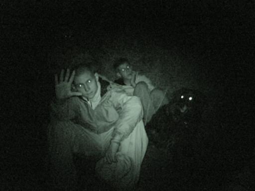 JA: Spacer... On to nazwał spacerem! Rozpoczęta koło 23:00 kilkugodzinna wędrówka po nieznanym (dla nich) terenie: marsz leśną drogą - pozostałością po nieistniejącej łemkowskiej wsi, skrzyżowania, zakręty, a wszystko bez używania światła. Pamiętam ten tekst rzucony spontanicznie, że gdyby nagle z ciemności ryknął niedźwiedź to jedynie przyszło by umierać ze strachu. I dziarska odpowiedź Jednego_Dzielnego, że w Bieszczadach jest pewnie z 20 niedźwiedzi, zatem mało pewne, aby któryś z nich postanowił się włóczyć właśnie tutaj.